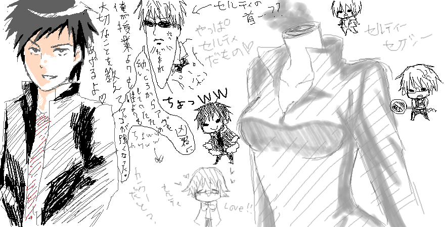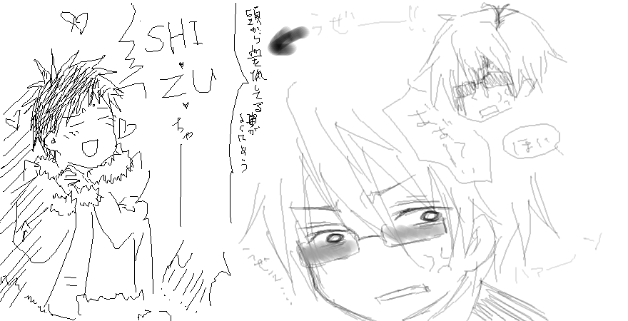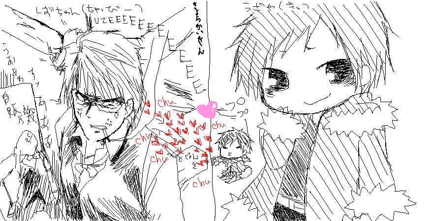 最後はデュラで一番お気にキャラを描いて締めました! ええい、このちっこい臨也イザくない普通に可愛い…!! 久々の絵チャ楽しかったー!またやりましょ〜ね〜 |